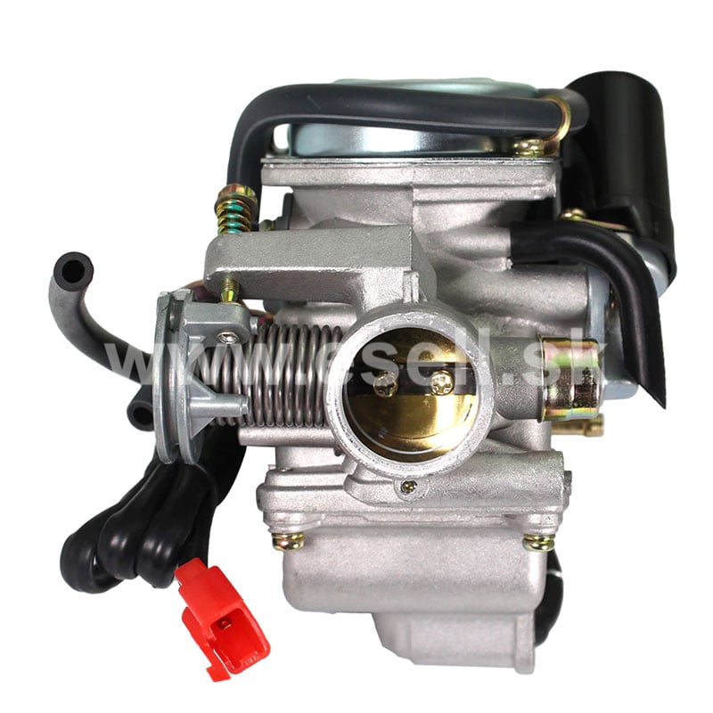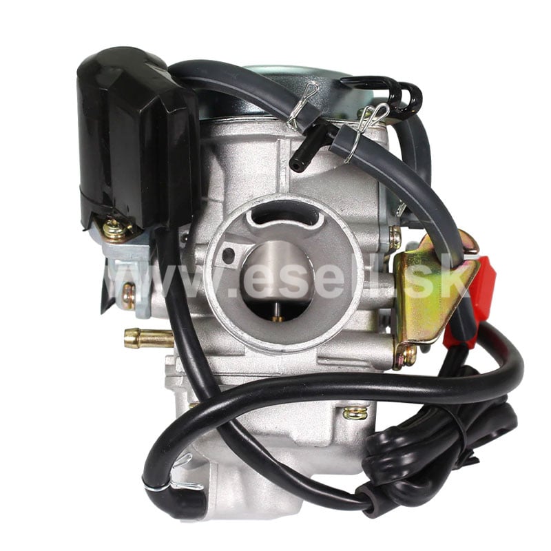Karburátor 26 mm / 42 mm s automatickým sýtičom sa najčastejšie používa pre štvortaktné motory na štvorkolky, motorky a motokáry. Tento karburátor má priemer difúzora 24mm a hrdlo na nasadenie filtra 42mm.