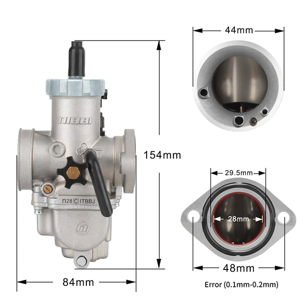 je speciálně navržený pro přírubové připojení u větších sání. Venturiho tryska má lepší proudění vzduchu než jiné karburátory stejného typu a proto je výkonnější. Proti originálnemu karburátoru majú lepšiu odozvu plynu. Na dosiahnutie najlepších výsledkov odporúčame zakúpiť aj vzduchový filter NIBBI RACING. Prístupné nastavenie voľnobehu a zmesi. Súčasťou balenia je sada trysiek