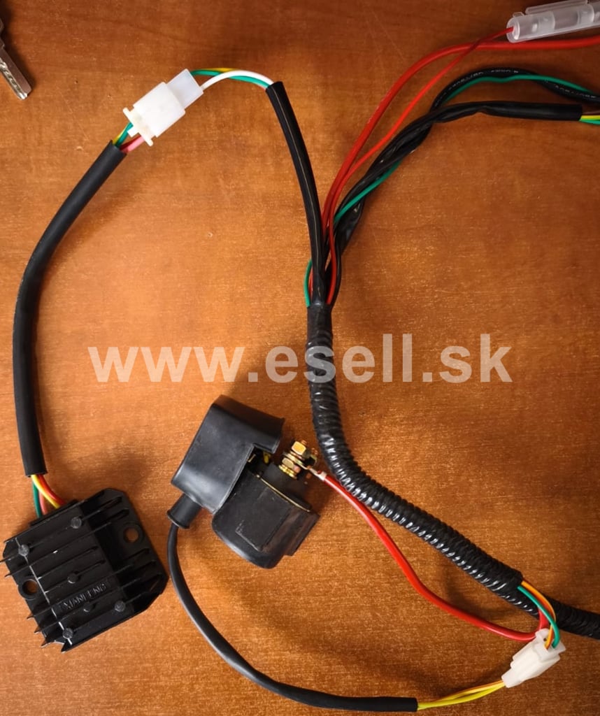 Kompletná kabeláž ATV, pitbike typ4 Balenie obsahuje: - kabeláž (ilustračné foto) - štartovacie relé - CDi - ovládací modul - regulátor napätia - spínacia skrinka - zapaľovacia cievka Pretože sa jedná o náhradný diel určený pre výmenu za pôvodnú, ku...