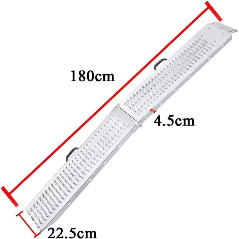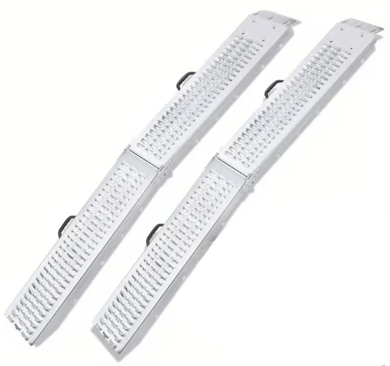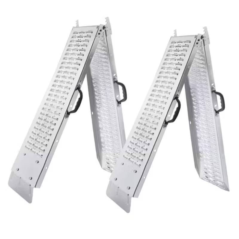 Hliníkové nájazdové rampy pre ATV - Štvorkolky, UTV, Buginy. Ľahká a robustná zváraná konštrukcia, na ochranu korby či návesu na koncoch vybavená červenými plastovými protektormi.