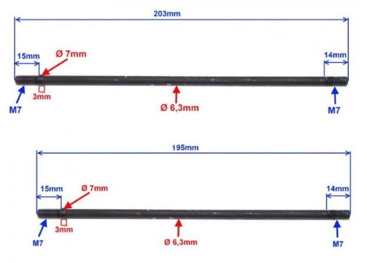 Štefty valca motora M7, dĺžka 195 a 203 mm